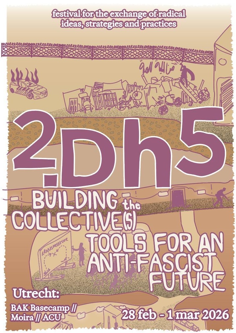 We leven in dystopische tijden. Extreemrechts is aangemoedigd en gaat de straat op. Queers en migranten worden steeds meer gemarginaliseerd en bedreigd. Liberale politieke partijen houden zich op oneerlijke wijze bezig met antifascistische retoriek, louter om een verkiezing nipt te winnen. We weten dat dit niet zal leiden tot een duurzaam alternatief; het is aan ons om dat op te bouwen, en we willen dat samen met jullie doen. Jullie zijn uitgenodigd als onze mede-samenzweerders, als onze kameraden, voor de komende editie van 2.Dh5, met als thema “Building the Collective(s) – Tools for an Antifascist Future” (Het collectief (de collectieven) opbouwen – Instrumenten voor een antifascistische toekomst).