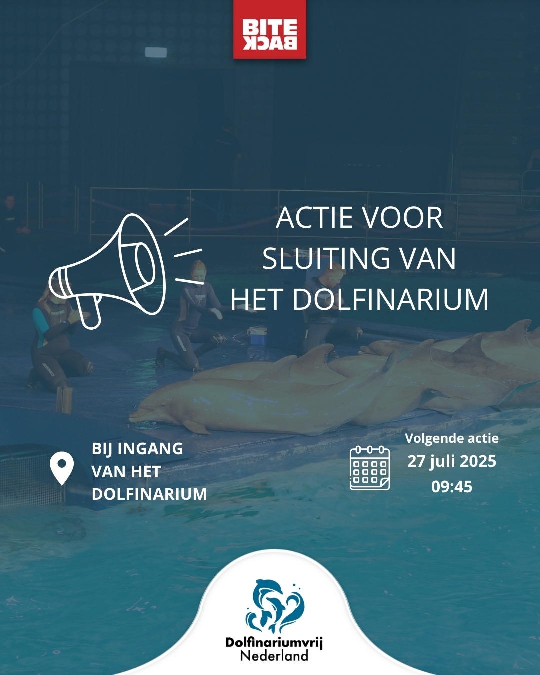 Een keer in de maand voeren we actie bij het Dolfinarium. Steeds meer mensen begrijpen dat het opsluiten van deze dieren niets minder is dan pure leedvermaak... Laten we samen de weinige bezoekers die wel nog naar dit park gaan dit ook doen inzien! 💪