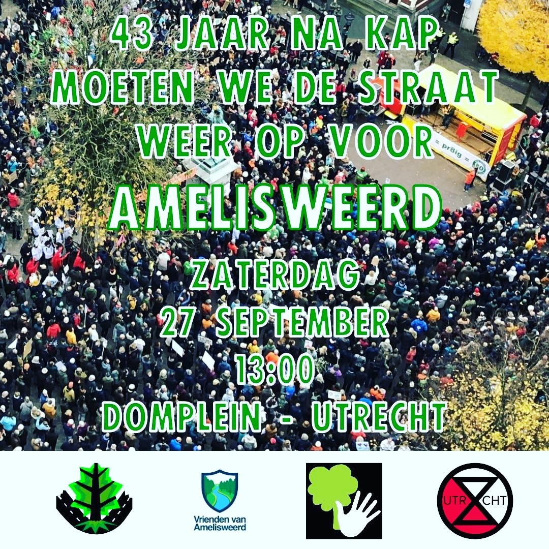 Op zaterdagmiddag 27 september gaan we wéér de straat op voor Amelisweerd! Want 43 jaar na de kap in 1982 is de strijd nog steeds niet gestreden. In de aanloop naar de aankomende verkiezingen willen wij het absurde plan nu definitief van tafel!