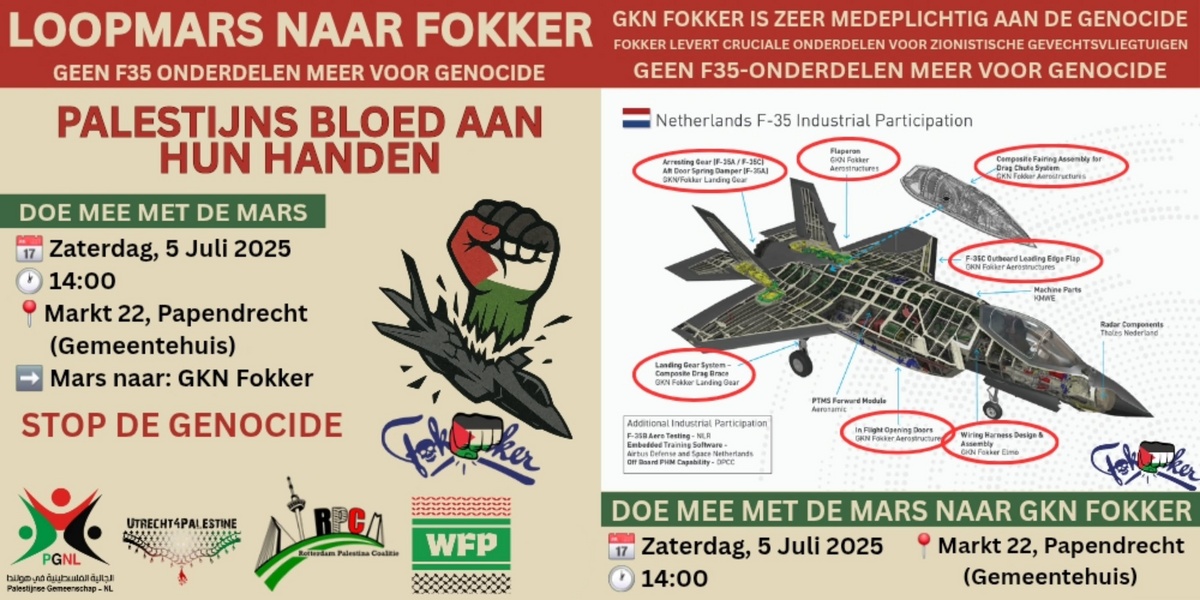 Join the protest march against GKN Fokker, a key supplier of F-35 parts used in the GENOCIDE in Gaza.