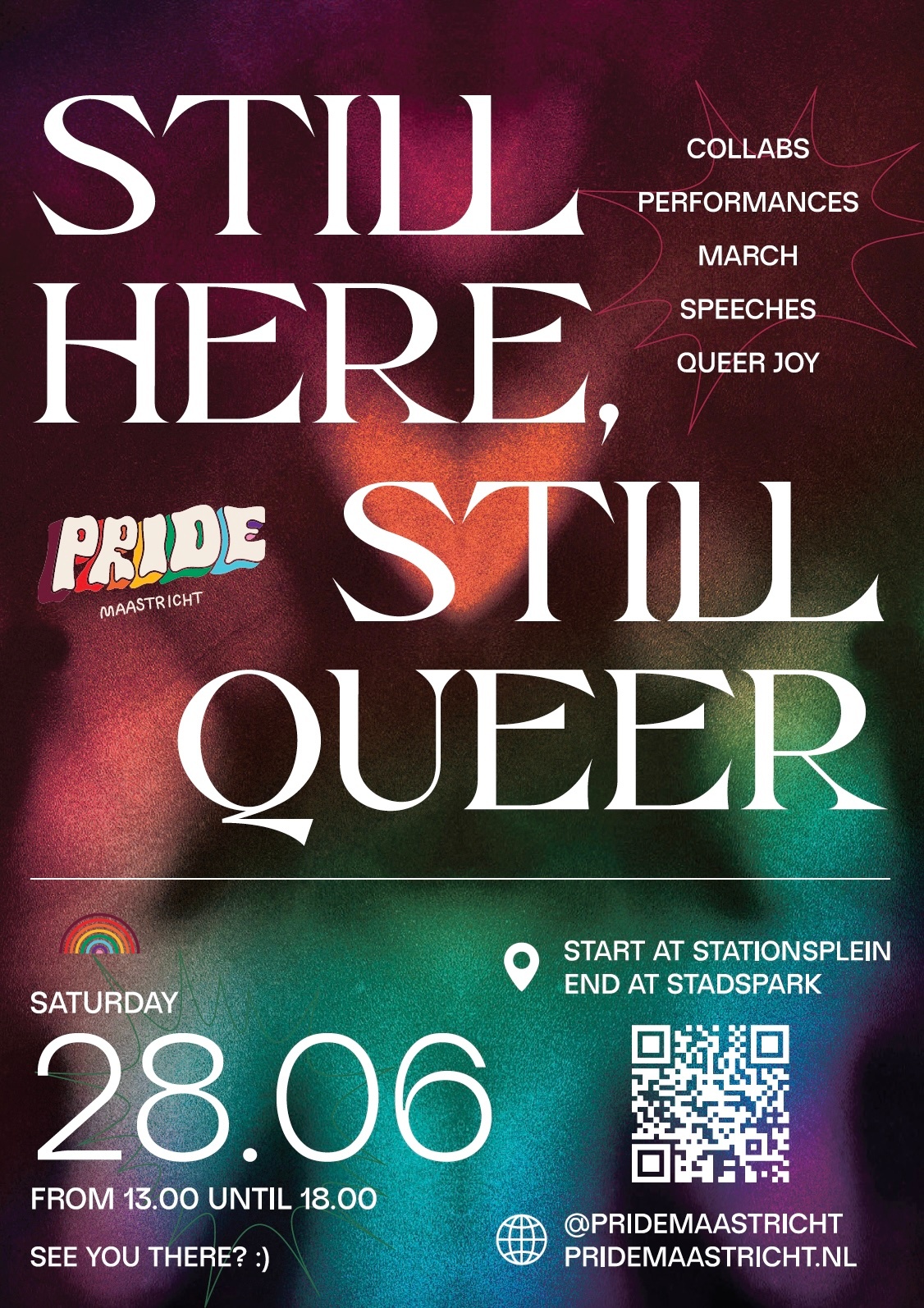 Pride Maastricht 2025 will be taking place on the 28th of June! Join us for a march, collabs, performances, speeches & queer joy π