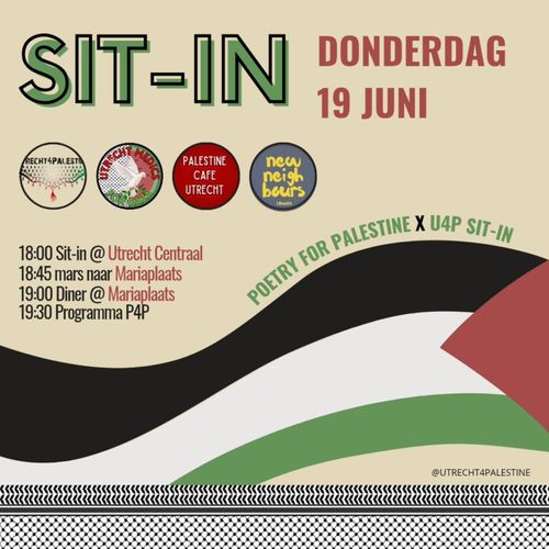 Sit-in + Poezië voor Palestine Thursday, Jun 19, 06:00 PM Station Utrecht Centraal Utrecht Centraal, Stationshal SitInpoëziePoetryPalestinePalestinamars