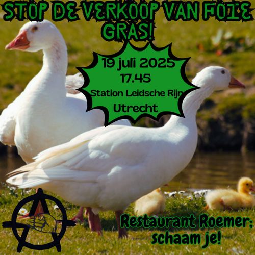 Stop foie gras protest Sunday, Dec 07, 06:00 PM Berlijnplein, Utrecht Berlijnplein, Grauwaart, Leidsche Rijn Centrum E.o., Leidsche Rijn, Utrecht, Nederland, 3541 DH, Nederland UtrechtstopfoiegrasgooseanimalAbusedierenmishandelingducks