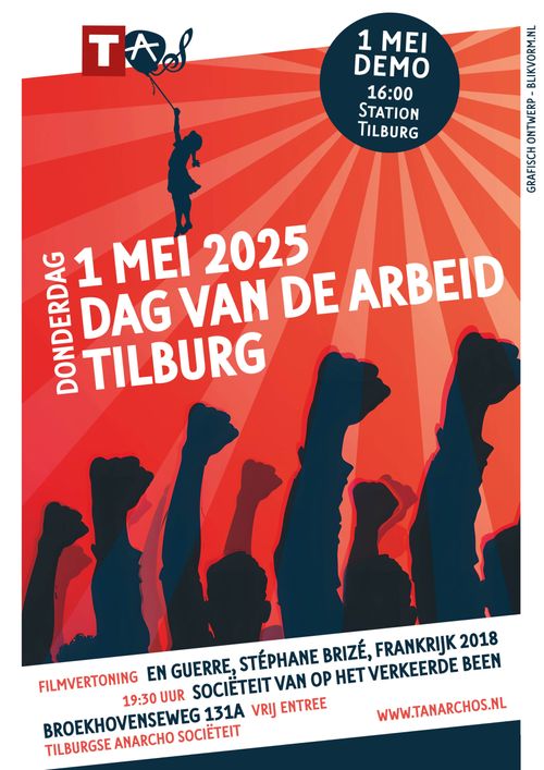 1 Mei Tilburg: Demo en filmvertoning Thursday, May 01, 04:00 PM Station Tilburg Centraal Spoorlaan, Dwaalgebied, Tilburg Centrum, Oud-Noord, Tilburg, Noord-Brabant, Nederland, 5038 EB, Nederland anarchismeTilburgMayDayFilmdemonstrationdemonstratie
