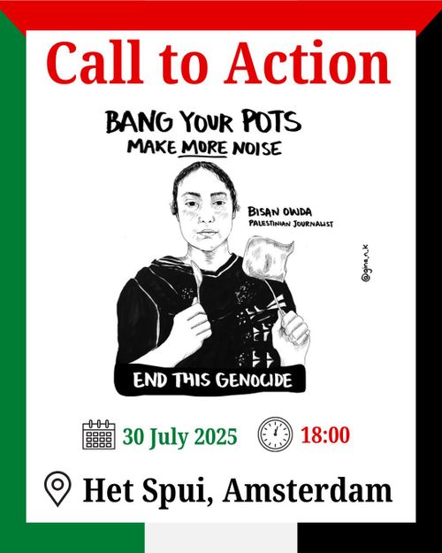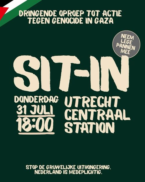 Wij werken hier niet aan mee: Leg je werk tijdelijk neer voor Gaza Monday, Nov 03, 12:00 PM-12:15 PM Monday 3 November 12:15 Overal Waar je ook bent OorlogsmisdadenDraagRoodluchtalarmWijWerkenHierNietAanMeeStopTheStarvationgeluidsdemo